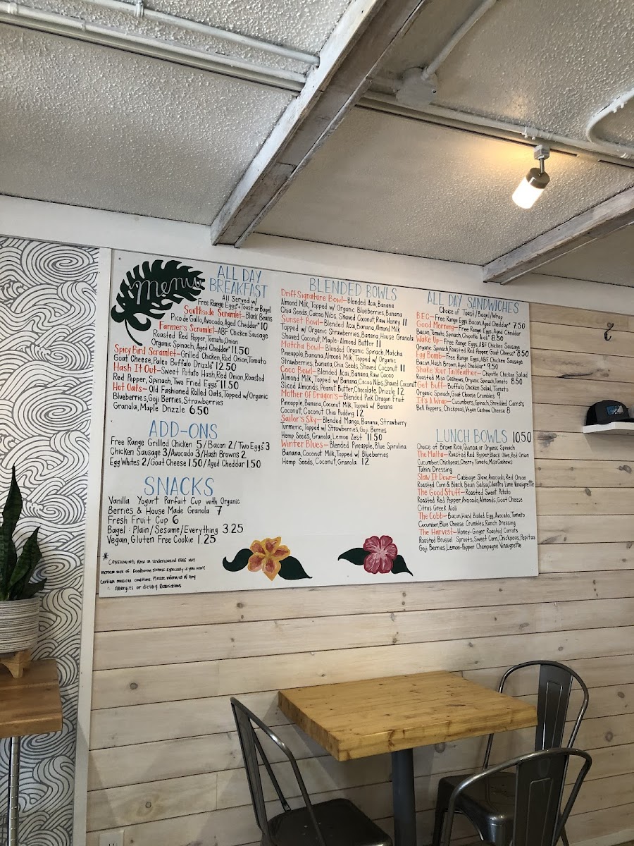 A collab with our neighbors at Tidal Wave, this smoothie comes with a 15% discount on Tidal Wave Classes! Banana, Blueberry, Almond Milk, Organic Vanilla Protein, Local Probiotic Yogurt, Blue Spirulina
